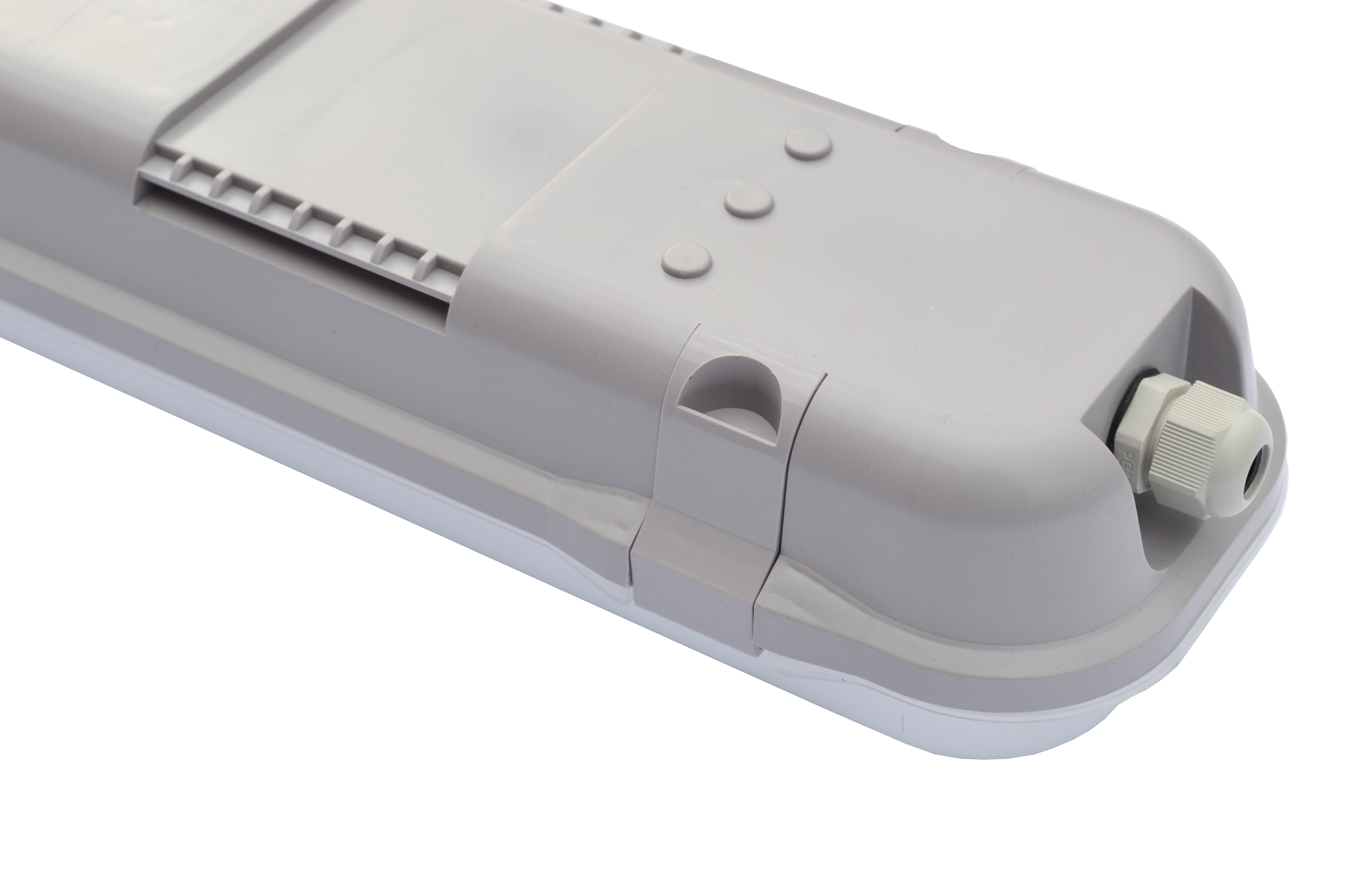 Корпус из негорючего АБС-пластика. Рассеиватель крепится к корпусу с помощью откидных клипс. Светодиодные платы устанавливаются на металлическую пластину, соединенную с корпусом поворотными винтами, облегчающими ее снятие, а также гибкими клипсами, обеспечивающими удобство обслуживания светильника на высоте. |