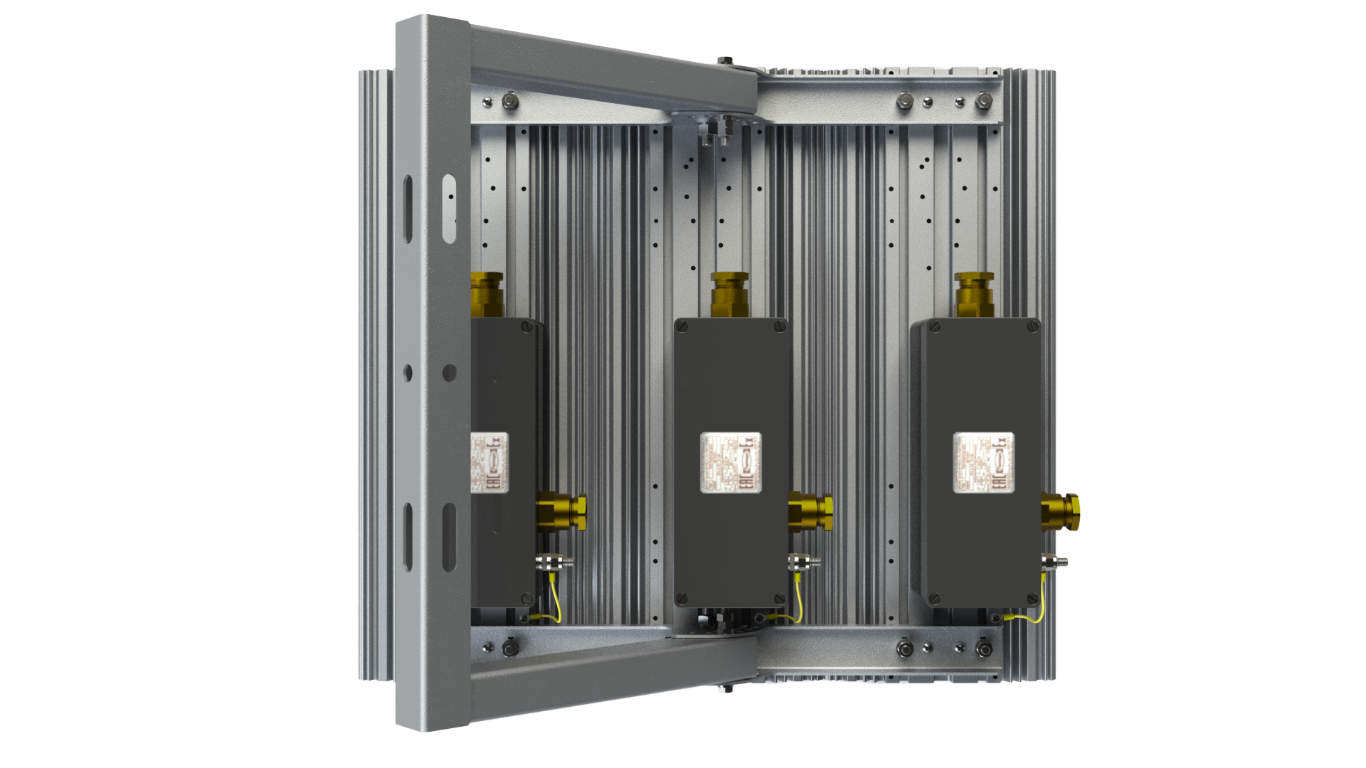 Анодированный алюминиевый сплав АД31 (ГОСТ 4784-97), полученный методом экструзии. Коммутационная коробка изготовлена из ударопрочного полиэстера, армированного стекловолокном, с добавлением графита для исключения накопления статического электричества. |